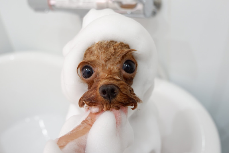 ふんだんにシルクを使用した贅沢なマシュマロホップの泡パックです。モチモチ泡に包まれたワンちゃんはふんわり柔らかな仕上がりになります。